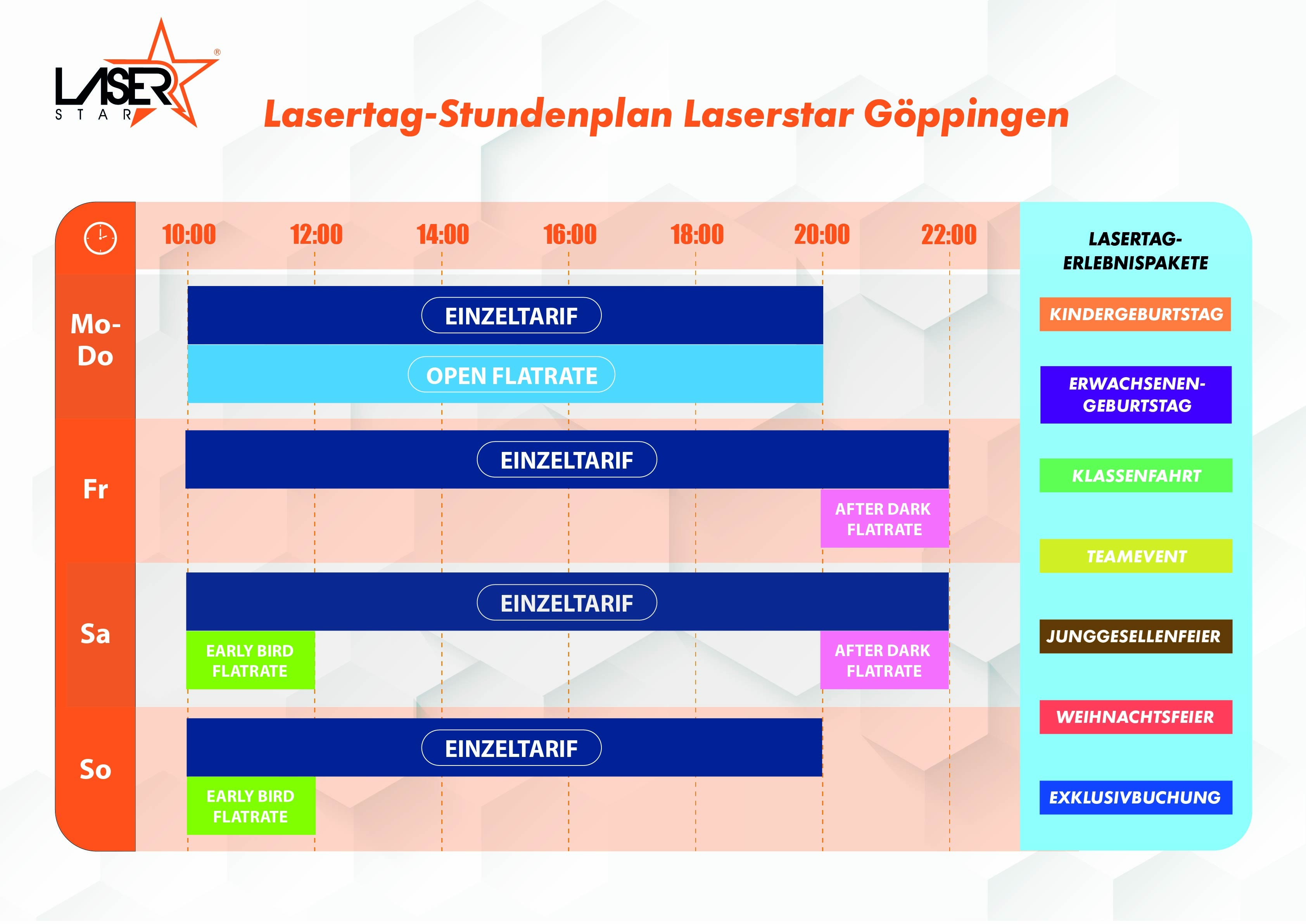 Ob Teamevent 🤝, Kindergeburtstag 🎂, Klassenfahrt 🎓 oder Junggesellenabschied 🍻 bei Laserstar Göppingen erwartet Euch actiongeladenes Entertainment für jeden Anlass! In der modernsten Lasertag-Arena der Region kämpft Ihr in atemberaubenden 3D-Gefechten mit Hightech-Ausrüstung und mehrsprachigem Briefing. Für Kindergeburtstage gibt es individuelle Pakete inklusive Tischdeko, Capri-Sonne und Arcade-Tokens . Schulklassen profitieren von flexiblen Gruppenangeboten und exklusivem Zugang auch vormittags . Und beim Junggesellenabschied sorgen spannende Lasertag-Duelle für unvergessliche Partystimmung . Barrierefreiheit, Premium-Equipment und Top-Kundenzufriedenheit garantieren Spaß für Groß und Klein.